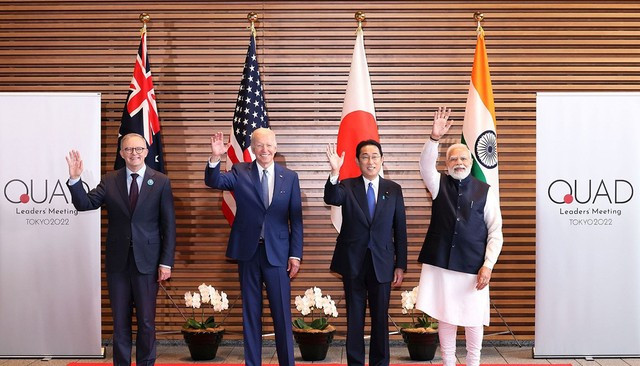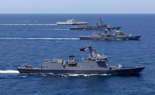 从概念到行动仅用两年时间,2024年4月,四国首次在菲律宾专属经济区展开联合海上巡逻,美国派出濒海战斗舰,澳大利亚派出护卫舰,日本派出驱逐舰,菲律宾出动两艘战舰,共同在南海展示武力。